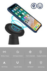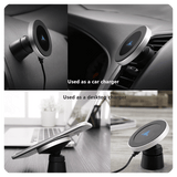 Package Includes: Magnetic wireless charger with air vent clamp, USB cable, detachable base, magnetic rings, instructions manual